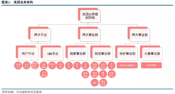 1)用户端和商家端打造本地生活服务完整闭环。美团的生态闭环有两个维度:用户端和商家端。用户端围绕到家、到店、出行、酒旅等完整的本地生活需求;B端围绕商家的获客营销、配送、金融支付、供应链管理等需求,并帮助商家进行数字化改造。从而分别在C端和B端在本地生活领域都形成完整的闭环。