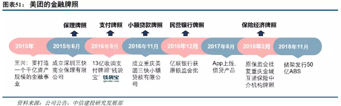 美团点评获多块金融牌照,开展金融业务硬性条件基本成熟。美团在原有核心业务外,增加了很多新业务,“不设边界”的美团已经涉足金融领域。基于庞大的用户体量,活跃的订单交易,具有天然开展互联网金融的优势。在2015-2018年间,美团点评先后获得商业保理、支付牌照、小额贷款牌照、民营银行牌照、保险经济牌照。美团开展金融业务的硬性条件已经比较成熟。