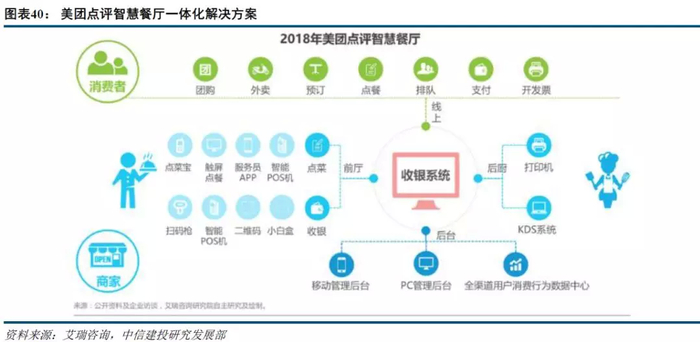 美团C端更全面的数据让商家更懂消费者,这是美团餐饮领域最大优势。如飞鹅、掌单、餐道等细分领域的提供商无法独立发展业务,会挑选带来最广客户群体的平台加入其中。美团点评是在餐饮上半场积累了最多的商户和顾客资源,因此在做大做强生态方面具有先发优势。专精细分技术服务可提高美团RMS的壁垒,获得更多稳定经营的餐饮大户。更多的合作商家意味着更多盈利,形成良性循环,发现更好的SaaS提供商并进一步提高壁垒。,