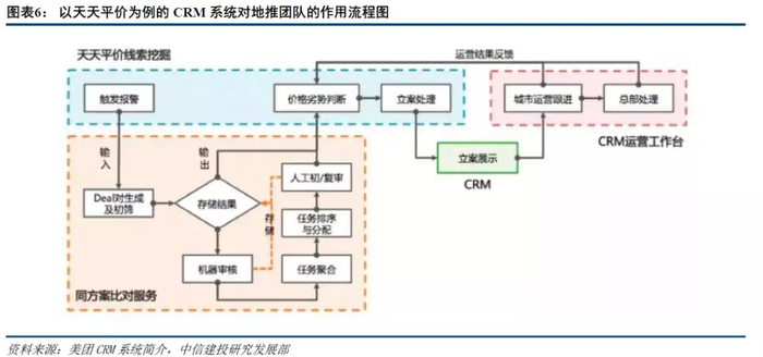 这套CRM信息系统除了可以帮助地推团队快速了解负责区域商家整体情况,还能将总部制定的决策命令下发到城市端,以任务模式直接推送到地推人员,该人员可以根据推荐的策略与商家沟通,进行价格干预,最终帮助美团消除线上价格劣势、树立消费者视角价格优势形象。