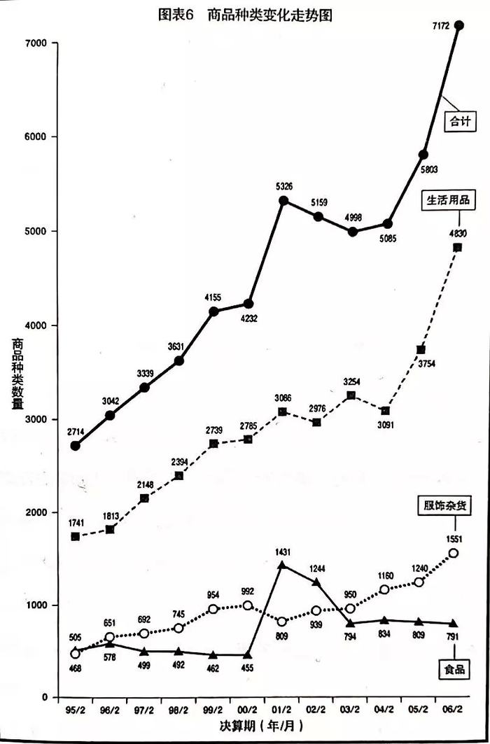 于是无印良品相当于是被动加快了商品开发的步伐,商品种类数量一年内增加了1094种,总计5326种。