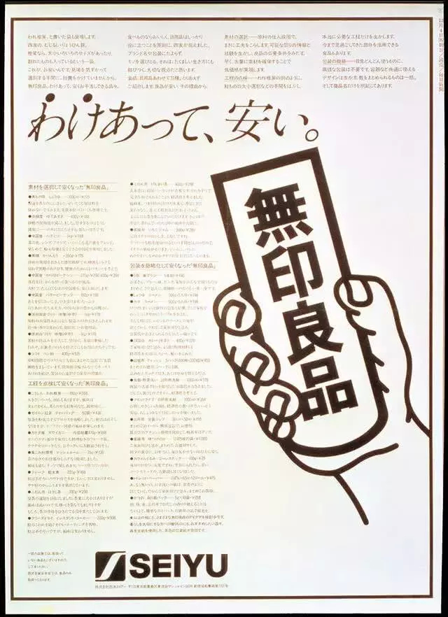 1980年,伴随着“因为合理,所以便宜”这一冲击性的广告标语,西友超市的自有品牌无印良品闪亮登场。