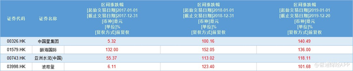 附截至2019年12月20日,累计涨幅超过100%的港股主板名单,具体如下: