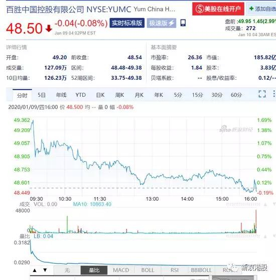 据路透旗下IFR引述消息人士表示,现正在纽交所上市,于中国经营肯德基、必胜客及Taco Bell等餐饮品牌的百胜中国,正考虑来港上市。百胜中国方面并未回复相关消息。消息公布后,百胜中国大涨3%,最新市值为185.82亿美元。