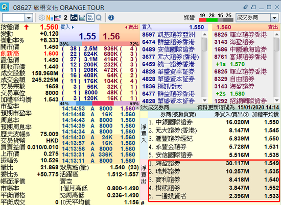 2019年11月,旅橙文化登陆港交所,上市以来,公司股价不断刷出新高,累计涨幅近5倍。昨日公司股价再度放量大涨近8%。