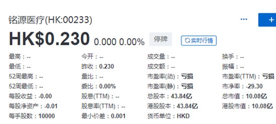 2020第1家被以上市规则除牌 铭源医疗明取消上市地位