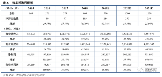盈利预测:预计海底捞2019-2021年归母净利润水平分别为23.97、30.16、50.09亿元,对应目前股价的PE分别为63、49、30倍,维持“买入”评级。