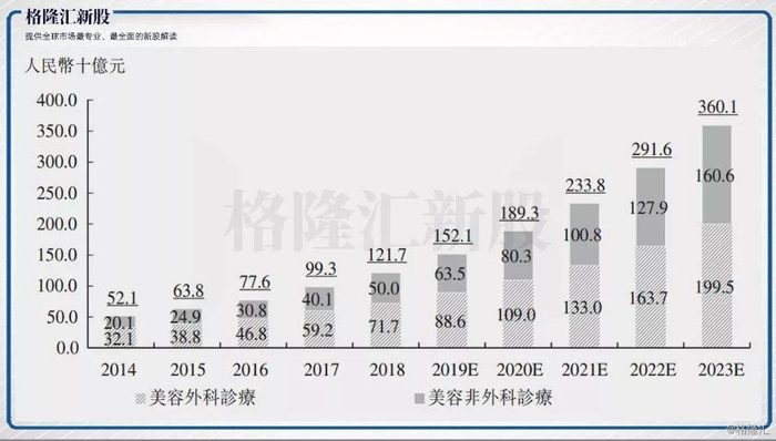 根据弗若斯特沙利文报告,按收入计算,2018年中国已成为第二大医疗美容服务市场,收入达到1217亿元,占全球医疗美容服务市场约13.5%的市场份额。 此外,预计2018年至 2023年中国医疗美容服务市场将以24.2%的复合年增长率增长, 成为全球前十大市场中增速最快的市场。