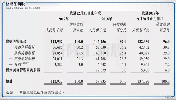 从收入端来看,公司营业收入呈现增长趋势。招股说明书中显示,瑞丽医美是一家位于中国浙江省的医疗美容服务供应商,目前公司旗下拥有四家私立盈利性医疗美容机构,在2017年、2018年及2019年前九个月分别实现营业收入1.13亿元、1.59亿元及1.38亿元,呈现营收持续增长趋势。按2018年医疗美容服务收益计,瑞丽医美在杭州市及浙江省所有私营美容服务供应商中分别排第四及第五名。