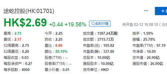 港证监:股权高度集中 途屹控股19名股东持股92.37%