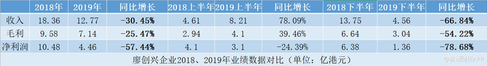 至3月5日时,廖创兴企业发布了2019年的全年业绩,净利润同比大降57.44%。若将全年业绩拆分来看,廖创兴企业下半年的财务表现已是“泥沙俱下”。