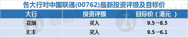 二、各大行对中国联通(00762)最新投资评级及目标价