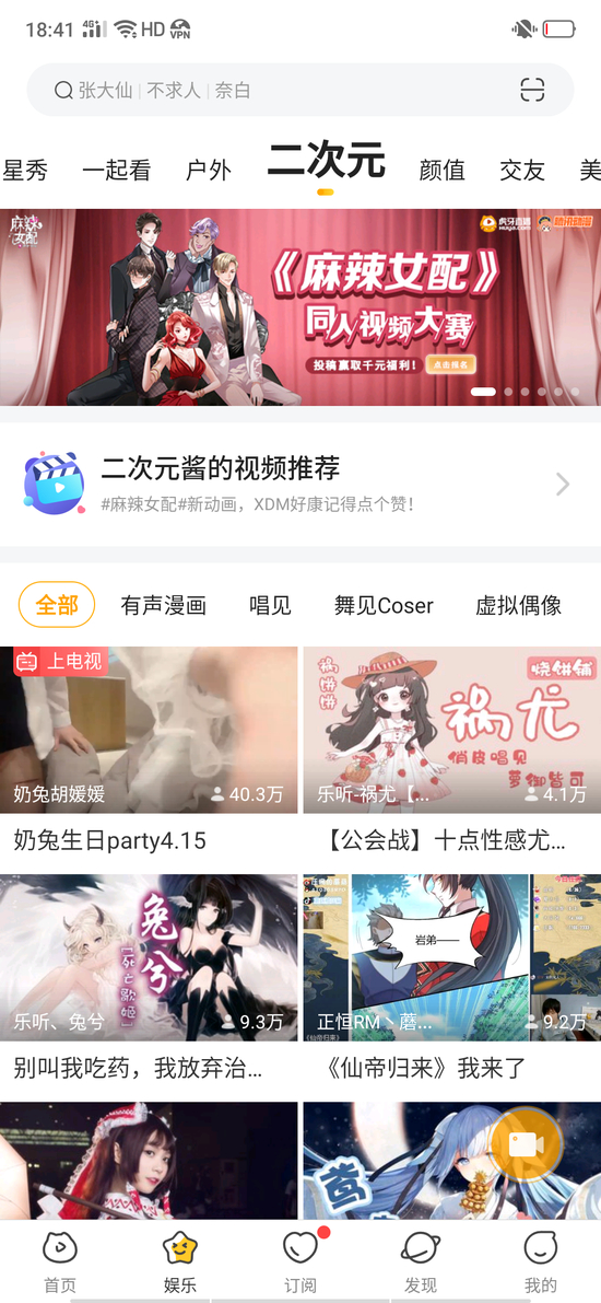 虎牙二次元上的唱见、舞见、虚拟偶像等分类