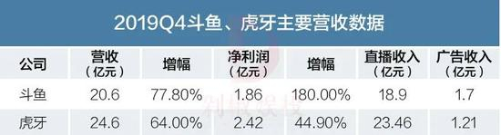 2019年是斗鱼数据历史新高的一年,2018年斗鱼收入36.54亿元,亏损8.76亿元;在2019年营收数据几乎翻了一倍,收入72.83亿元,同比增长99.3%,净利润为3.46亿元,连续四个季度盈利。
