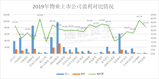 祈福生活服务虽然营收仅3.97亿元,毛利为1.76亿元,其毛利率高达44.4%,排名第一。