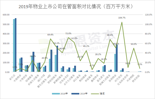 就在管服务面积而言,2014年06月30日首家在香港上市的中国内地物业公司——彩生活不愧为“物业第一股”的称号,在管服务面积562.0百万平方米,合约管理建筑面积高达1,210.7百万平方米,在管社区数目2,863个,稳居行业第一位,在管服务面积高出行业第二的保利物业近2倍,但值得注意的是彩生活由于前期一系列的收并购动作导致短期偿债压力增大,于2019年开始放缓收并购的脚步,在管面积增幅仅1.5%。在管面积增幅最大的当属时代邻里(104.7%)。