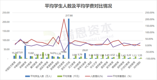 *宇华教育、睿见教育、希望教育未单独披露学费,所以以平均学费及住宿费/平均人数计算,枫叶教育年报已披露平均学费直接取数。