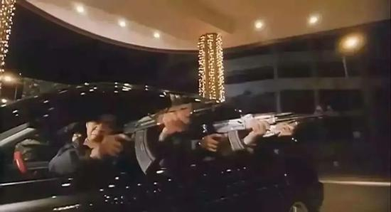 根据澳门黑帮事迹拍摄有电影《濠江风云》,图为黑帮扫射酒店大堂的片段