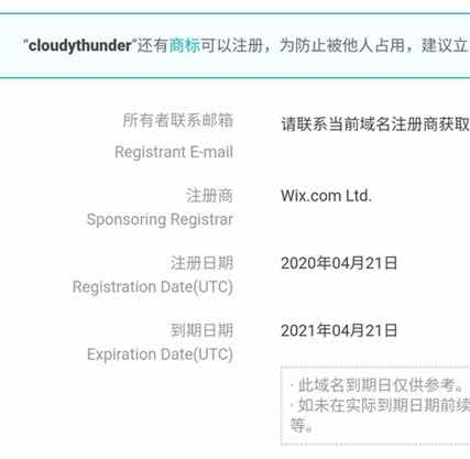 另外,通过阿里云域名查询显示,阴霆研究的官网成立于2020年4月,相关名称并没有任何商标权。