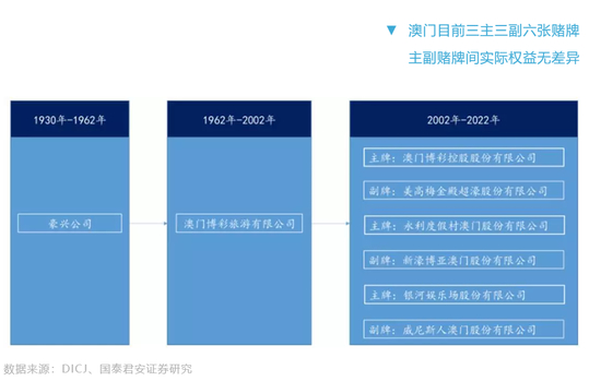 澳博及美高梅的拍照将于2020年3月31日到期,由于政府内部事宜,澳门政府极有可能将牌照有效期延续至2022年;而永利澳门、银河娱乐、金沙中国、新濠博亚的牌照则于2022年6月26日到期。
