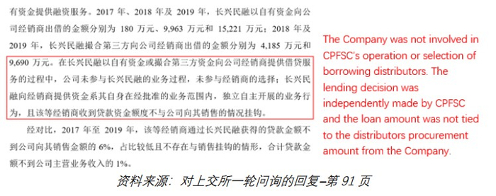 公司在回应中回避了我们关于长兴民融向分销商提供表外贷款的指控。