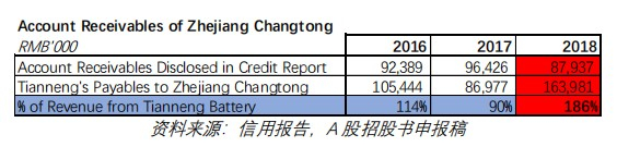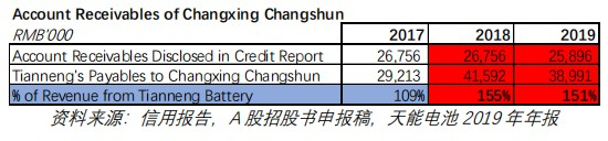 我们获得了沭阳新天,浙江畅通和长兴长顺的中国信用报告。不出所料,这些关联方几乎所有收入都来自天能。自2018年以来,天能电池披露的向这些关联方的应付账款比其在各自信用报告中显示的应收账款高得多。我们怀疑天能与这些关联方交易的真实交易规模没有向公众披露。而且至少有两套账目来记录这些关联交易,我们怀疑天能的内部人士可能会通过这些交易从上市公司中窃取大量现金。