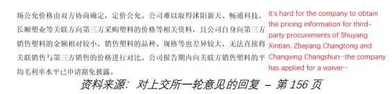为了取得豁免,天能荒谬地表示“公司难以取得沭阳新天、畅通科技、长顺塑业等关联方向第三方采购塑料的价格等相关资料”。要知道,这些公司都是由张董事长的亲戚控制。我们认为,监管机构应要求张董事长透露这些关系背后的真相。