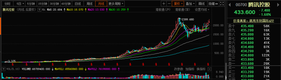 在中国股票市场,堪比茅台的存在,可能也只有腾讯了。虽然马化腾连续小笔减持,金额看似也很大,但并没有影响到腾讯的长期走势。近十五年时间,腾讯控股上涨近400倍。即从2005年的6港元左右上涨到前期最高位近2400港元的水平。