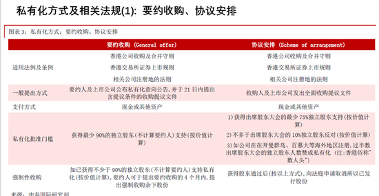 私有化一般有两种形式,要约收购和协议安排。
