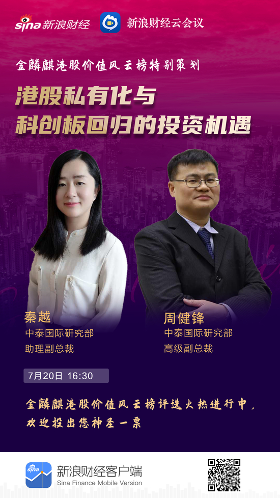 新浪港股讯 7月21日消息,港股私有化升温,科创板回归初见端倪!动辄涨幅翻倍的港股私有化企业有哪些特点,如何筛选,私有化回归科创板公司的投资机遇在哪里?7月20日,中泰国际研究部高级副总裁周健锋深度对话中泰国际研究部助理副总裁秦越,为您带来港股独特的私有化投资机遇。视频回顾,中泰国际周健锋对话秦越:港股私有化与科创板回归的投资机遇。