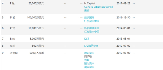 2016年12月D轮融资,建银国际、红杉资本投资10亿美元。