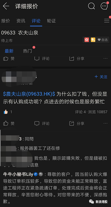 有股民更是表示,由于认购火爆,富途证券等很多券商出现无法认购情况,富途证券客服在留言处表示,尊敬的客户,因当前认购火爆导致订单积压较多,导致您的资金未能正常释放,富途工程师正在紧急疏通订单,处理完成后资金将会正常释放,辛苦您耐心等待。对您带来的不便,深感抱歉。”