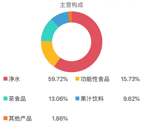 从收入组成来看,“包装饮用水”是农夫山泉的业绩基石,贡献近六成收入。