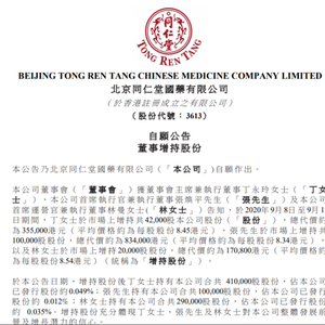 同仁堂国药:公司董事局主席和CEO等近期增持公司股份