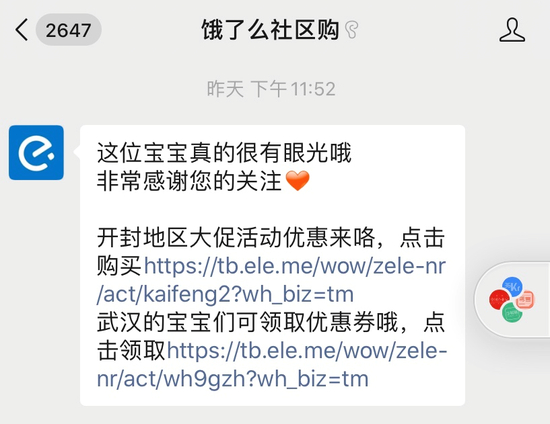 Tech星球(微信ID:tech618)独家获悉,郑州、武汉和开封三地已在饿了么App上线社区团购功能,用户需要搜索“饿了么社区购”方能找到入口,可根据自提点距离,选择适合团长。而微信公众号仅有武汉和开封正式上线。