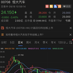 今日早盘,恒大汽车波动较大,高开后出现跳水,最新市值超过2000亿港元。