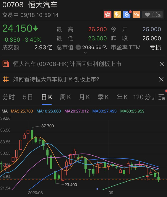 9月18日早间,恒大汽车(0708.HK)公告,公司拟发行人民币股份及于上海证券交易所科创板上市。