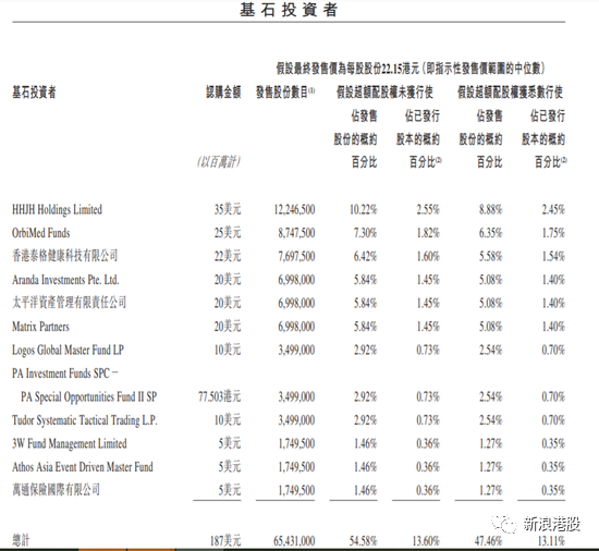公司引入16名基石投资者,包括RA Capital、CBC、Janchor Partners、新加坡政府投资公司、贝莱德基金、Cormorant、高瓴资本、Invus、清池资本、奥博资本基金、Rock Springs Capital、Indus、Octagon Investments、Surveyor、Tybne及Woodline Fund,按中间价计算,约占发售股份52.26%,设六个月禁售期。