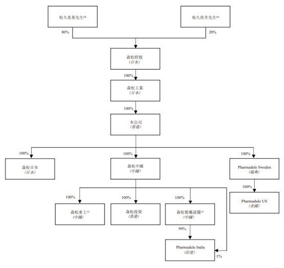经过多年来一系列重组与分拆,目前森松国际的母公司森松控股由松久晃基和松久浩幸持股100%,而森松控股透过森松工业(日本)持有此次递表待上市的森松国际100%股权。
