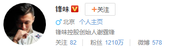 2017年,谢霆锋开通微博,账号名字是他创立的品牌锋味,认证信息是锋味控股创始人——已经抛开了明星身份。