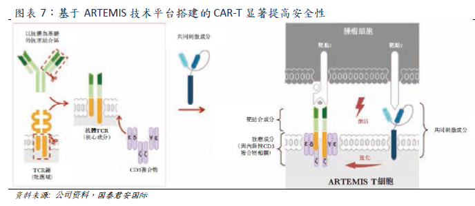 Yescarta和Kymriah均属于第二代CAR结构,分别采用CD28和4-1BB共激域。而药明巨诺的核心候选产品relma-cel基于ARTEMIS技术平台搭建的CAR结构与前两者完全不同。relma-cel将共同刺激成分与抗体TCR和CD3复合物形成的多聚体复合物分开,可以使用为免疫细胞信号自然形成的内部细胞反应及调节机制,通过共同刺激成分的激活强化T细胞应答。公司认为已上市产品的安全性风险主要由于直接将CD3信号域融合或耦合至T细胞共刺激域的表达CAR构建体的T细胞超活化。而relma-cel的结构可以显著的提高CAR-T疗法的安全性。临床试验数据显示Relma-cel 在疗效相当(ORR=75.9%,CR=48.3%)的情况下,严重不良事件发生率显著小于已经上市的CAR-T产品。
