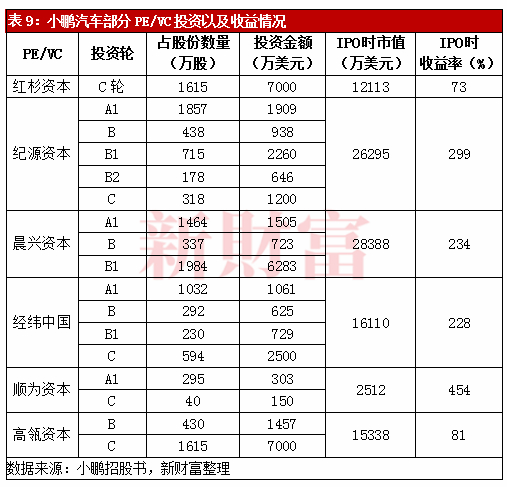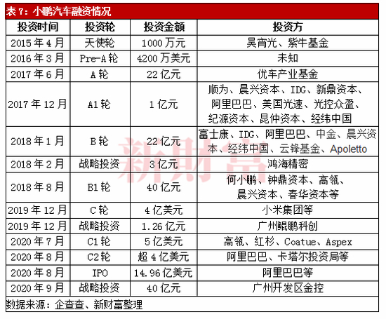 小鹏上市前后,共计融资28亿美元、139亿元人民币,折合人民币约340亿元(表7)。