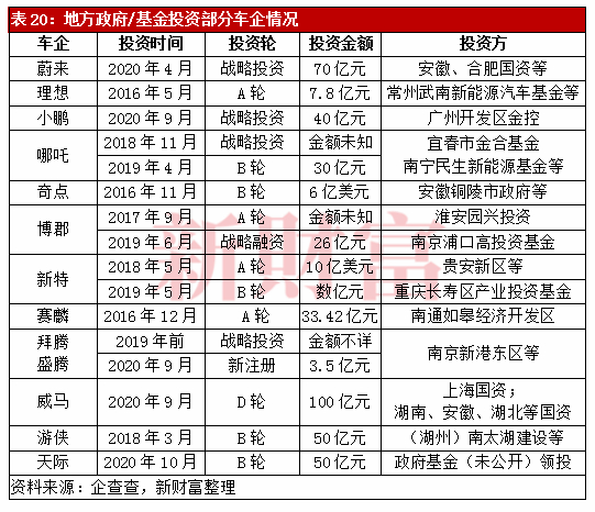 威马牵手上海,蔚来落户安徽合肥,小鹏扎根广东,理想坐落江苏常州。头部车企都已与地方政府绑定。另外,哪吒汽车也与江西宜春等地牵手,新特则联手贵州的贵安新区(表20)。