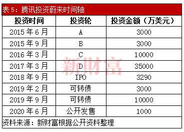 蔚来从2019年2月到2020年多次融资,腾讯先后再投资三次,加上IPO前,腾讯在蔚来一家身上,累计投资总金额大约6.83亿美元(表5),至2020年7月,持股比例14.34%,成为第一大股东。