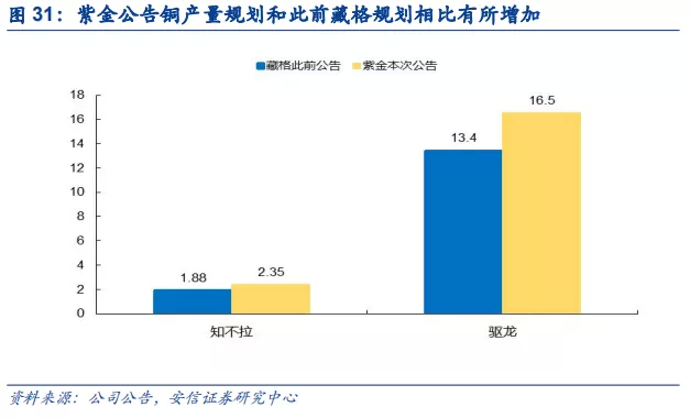 特别值得注意的是,紫金本次公告的产量规划相比藏格此前公告的要更大一些。此前藏格公告,驱龙铜矿一期满产后铜产量约为13.4万吨,而本次紫金公告提升至16.5万吨,此前公告知不拉可年产铜约1.88万吨,本次紫金公告提升至2.35万吨。公告中紫金也提到,一些产量规划是经过公司研究进行了调整,这也体现了紫金一贯接手项目后提质增产年的特色。