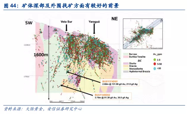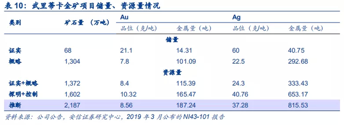 武里蒂卡金矿为世界级高品位大型金矿,探矿增储潜力大。截至2020年3月底最新数据,武里蒂卡拥有黄金资源量353吨,平均品位9.3 克/吨,银1,469吨,平均品位38.8克/吨,开采条件良好,同时在矿体深部及外围找矿方面有较好的前景,探矿增储潜力大。