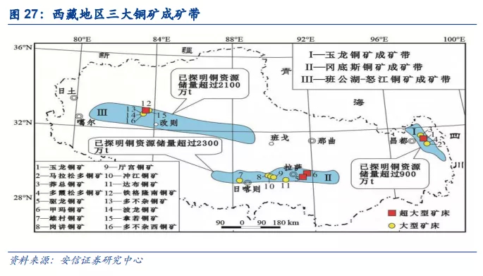 驱龙铜矿是国内最大的斑岩型铜钼矿,地处大型成矿带,增储前景广阔。驱龙地处西藏三大成矿带之一的特提斯-冈底斯成矿带,该成矿带目前有甲玛、雄村、厅宫等12个具有工业意义的矿床,资源潜力大;据文献《西藏铜矿资源优势及开发利用展望》记载,驱龙铜矿已探明铜金属资源量超过1000万吨,是国内探明已知的最大斑岩型铜矿。而据紫金公告,驱龙的远景铜资源量可能超过2000万吨。