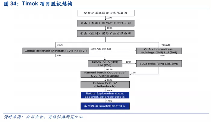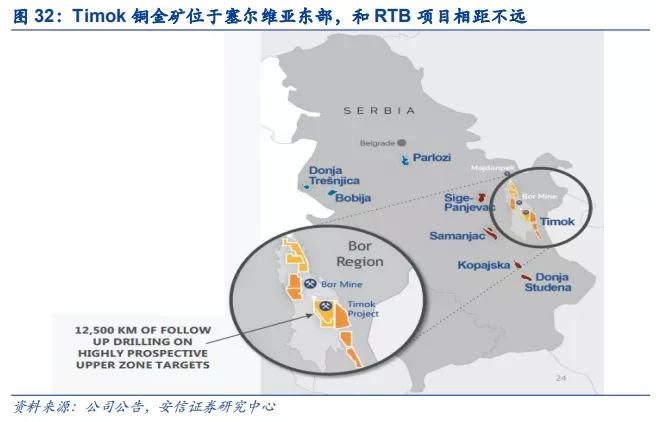 Timok项目和RTB项目有一定协同效应。2018年12月,紫金矿业完成对塞尔维亚RTB Bor项目的收购,与Timok项目具备一定协同效应。一是Timok上带矿投产后主要产品是铜精矿,外售需送往周边国家冶炼厂或海运回国,而Timok铜金矿距离RTB BOR的冶炼项目仅7公里,内销给RTB能节约运输费用。二是RTB和Timok铜矿后续均需进一步开发,具备整合开发的协同效应。