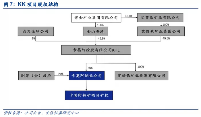 进军艾芬豪董事会,拟增持艾芬豪股权,进一步强化对KK项目的控制力。2019年5月,艾芬豪公告称,将邀请紫金矿业董事长陈景河先生加入艾芬豪董事会。2019年6月,陈景河以最高票数加入董事会。2019年10月8日,紫金矿业发布公告,拟通过子公司金山香港以现金方式从中信金属非洲公司、Friedland、Newstar 收购其持有的艾芬豪矿业4865万股,交易将在2019年12月31日前完成交割,本次交易完成后公司对艾芬豪的持股比例从9.8%提升到13.88%,从而对KK铜矿的持股比例从43.5%提高到了45.1%。