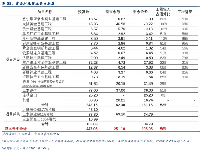 公司确定2020年是“项目建设年”,全面加快资源优势向效益优势转变,多个重点项目建设捷报频传。矿产铜方面,KK项目、塞尔维亚紫金铜业、Timok项目、巨龙铜矿建设顺利。截至2020年11月上旬,KK项目地下开拓工程超预期,地表堆场矿石储备充足,选矿厂和其他地表基础设施建设进展顺利,目前公司已经开始讨论铜精矿销售方案。